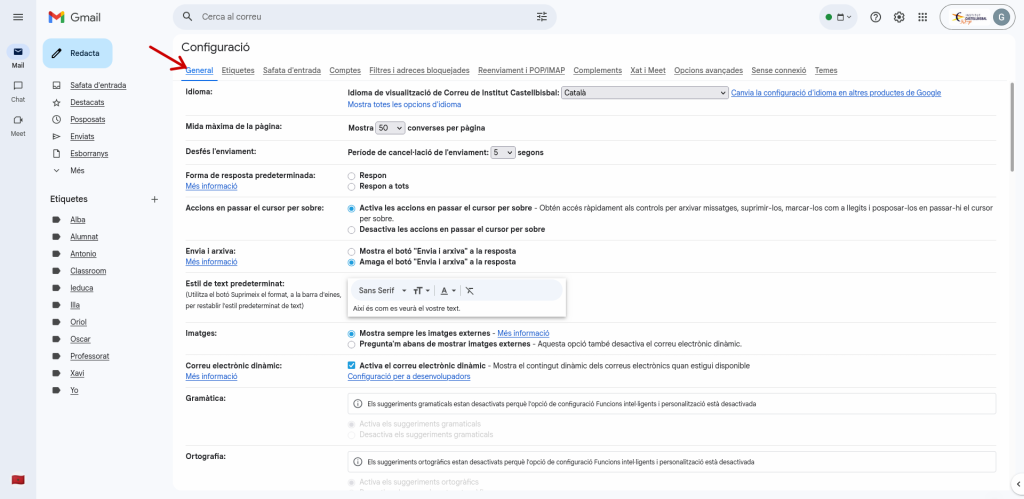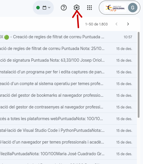 El primer que has de fer és entrar a Gmail. Després, ves a la part dreta i veuràs la icona de configuració. Hi fas clic i entres a l’apartat “Mostra tota la configuració”. Baixa fins a trobar l’apartat que posa “Signatura” i la crees. Pots utilitzar Canva per crear-la i agafar alguna referència d’allà per fer-la més atractiva. Et recomano que utilitzis una signatura amb colors que tinguin relació amb els de la teva web, per mantenir una imatge coherent.