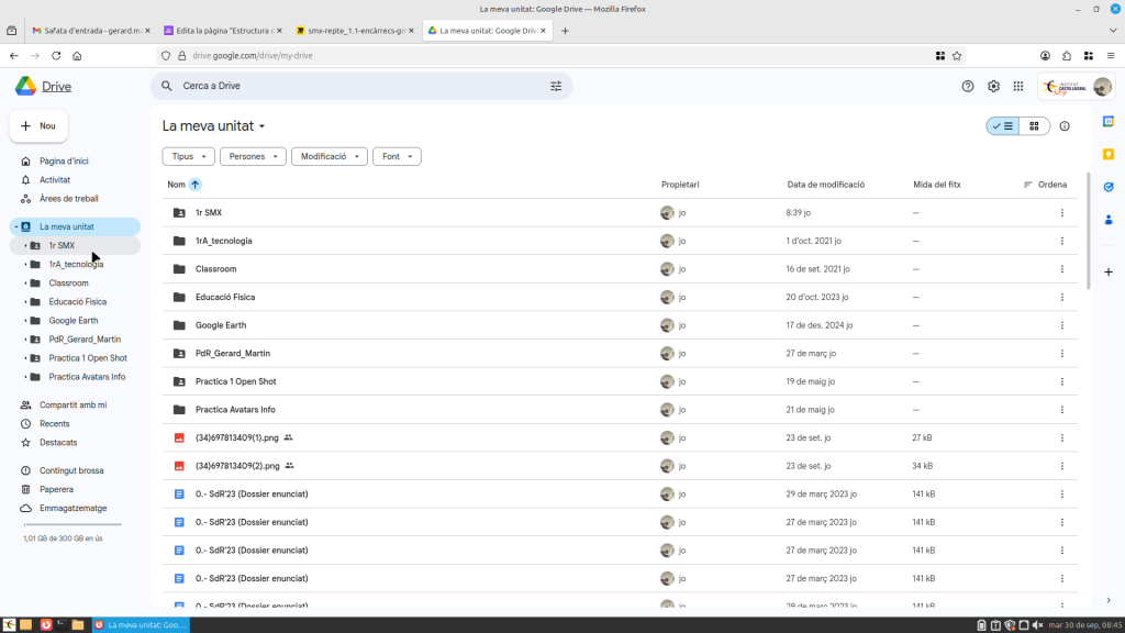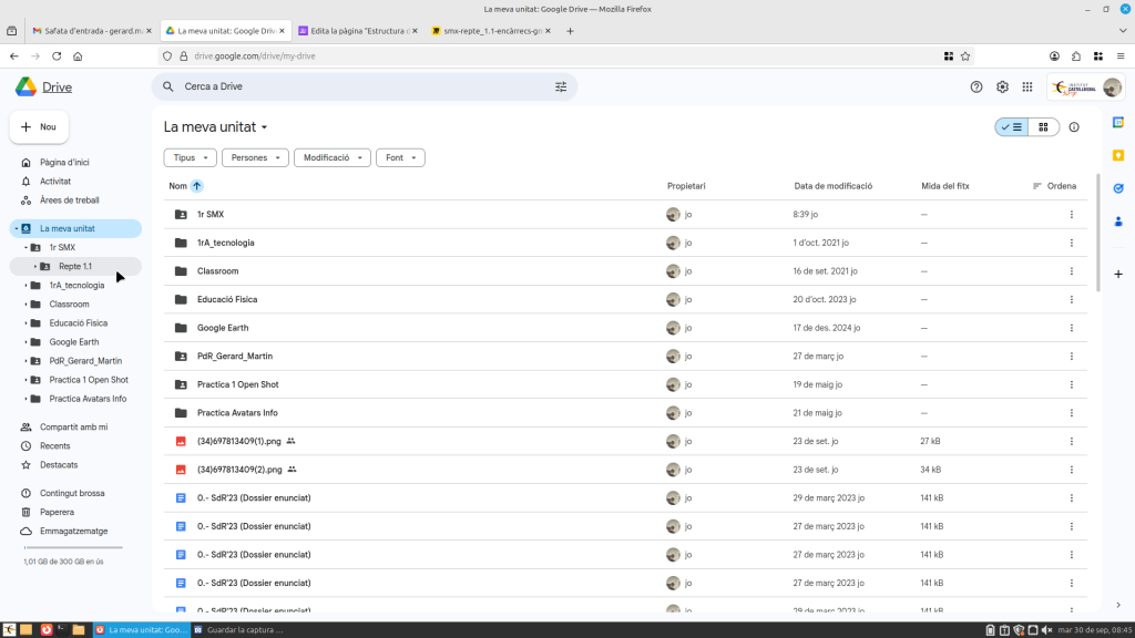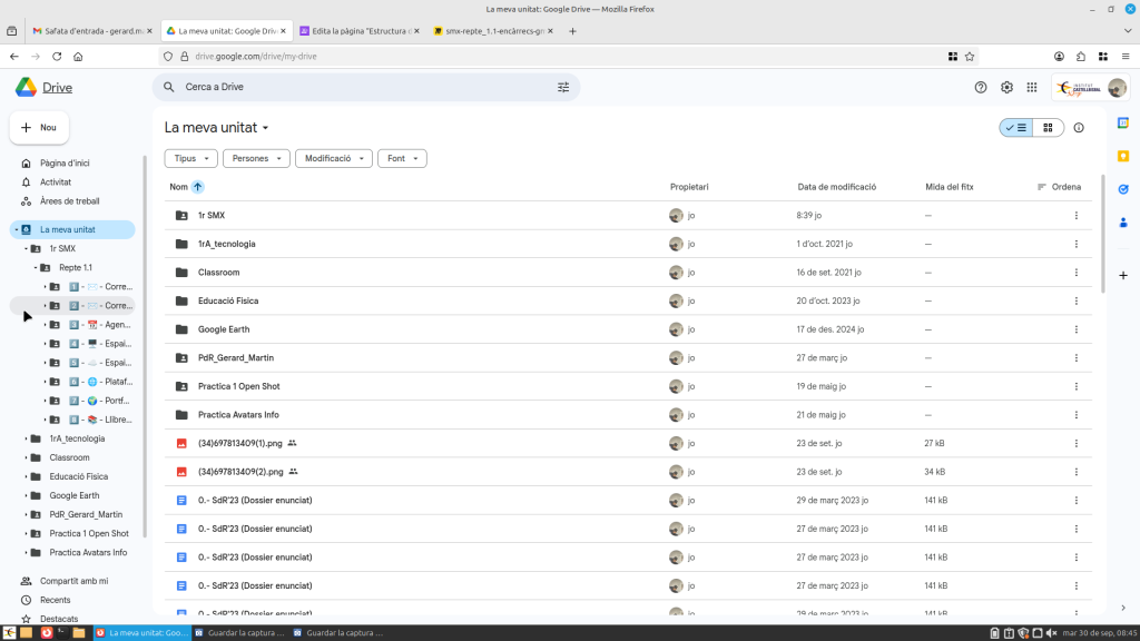 La carpeta principal es diu “1r SMX” i dins tinc subcarpetes per a cada repte, com”Repte 1.1″, etc. A cada repte tinc apartats diferents per cada tasca. Amb les subcarpetes creades hes mes facil tenir-ho tot organitzat