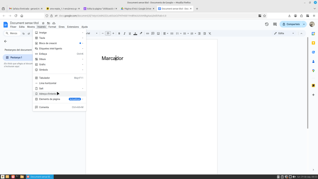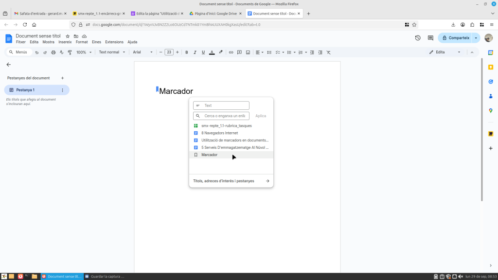 Utilització de marcadors en documents de Drive
