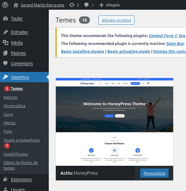 Aquest és el tema que tinc descarregat jo a WordPress per a la meva pàgina.
