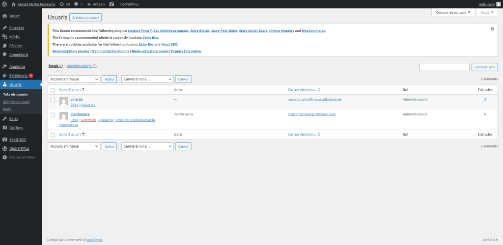 Compte major amb permisos totals del WordPress