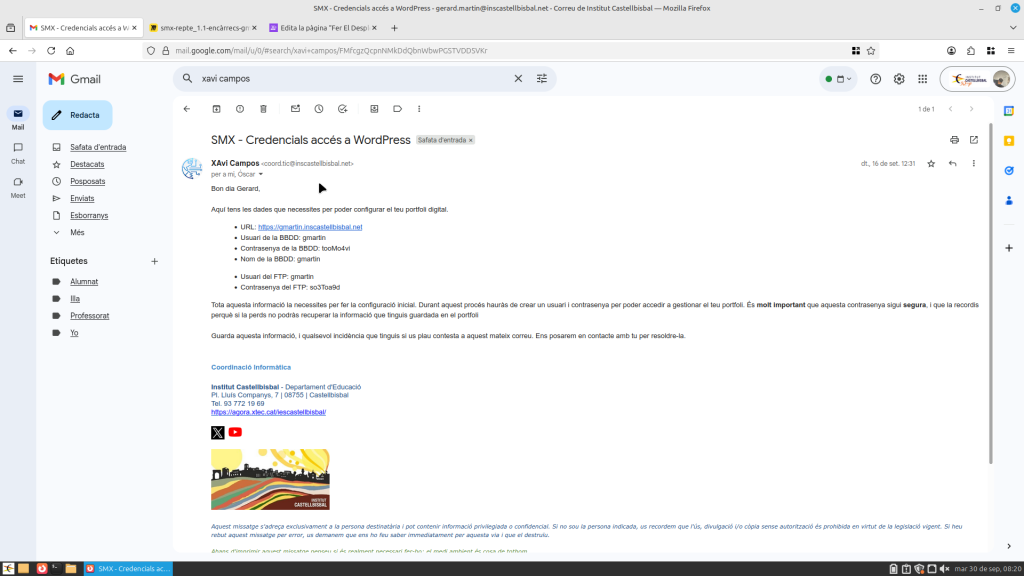 Per poder fer el desplegament de WordPress ens van enviar un correu amb les credencials necessàries per descarregar el wordpress i inicia sessió amb el nostre compte.