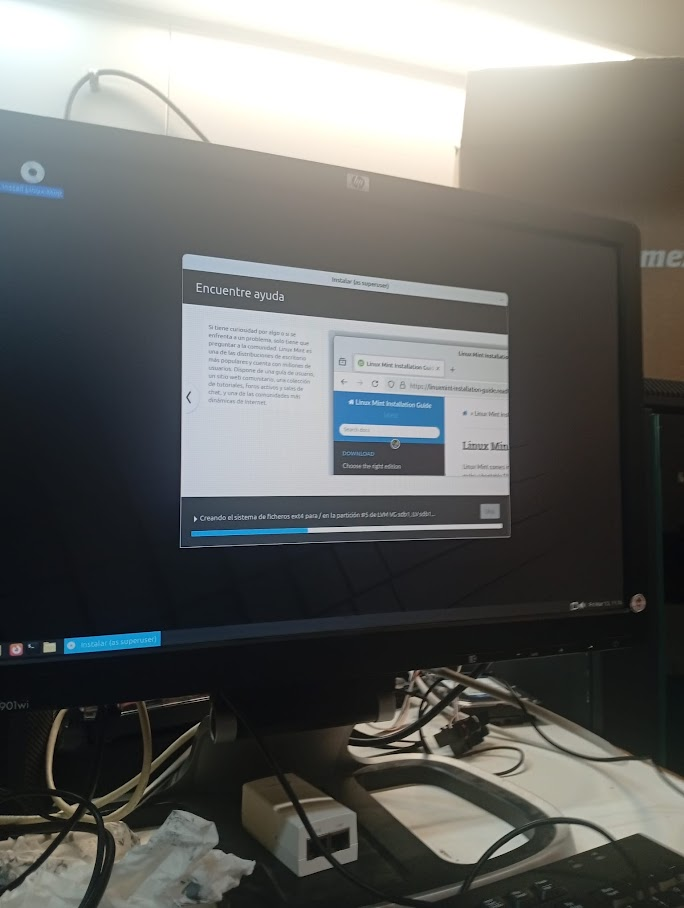 Finalitzant: es veu una barra de càrrega on el sistema s’està copiant al disc dur. En aquesta pantalla, el Linux ens dóna la benvinguda