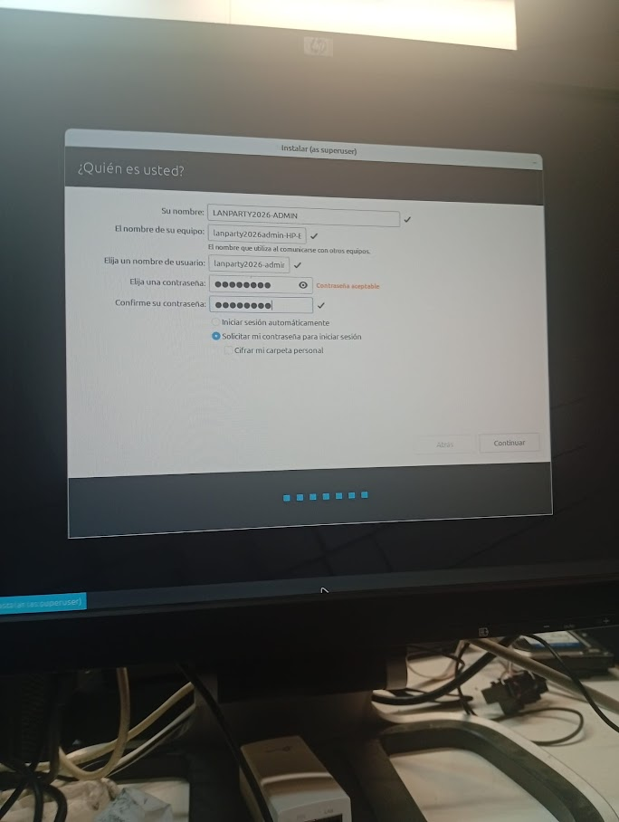 - Contrasenya: N’hem posat una de segura per protegir la màquina. Hem triat que ens demani la contrasenya cada vegada que vulguem entrar per seguretat.