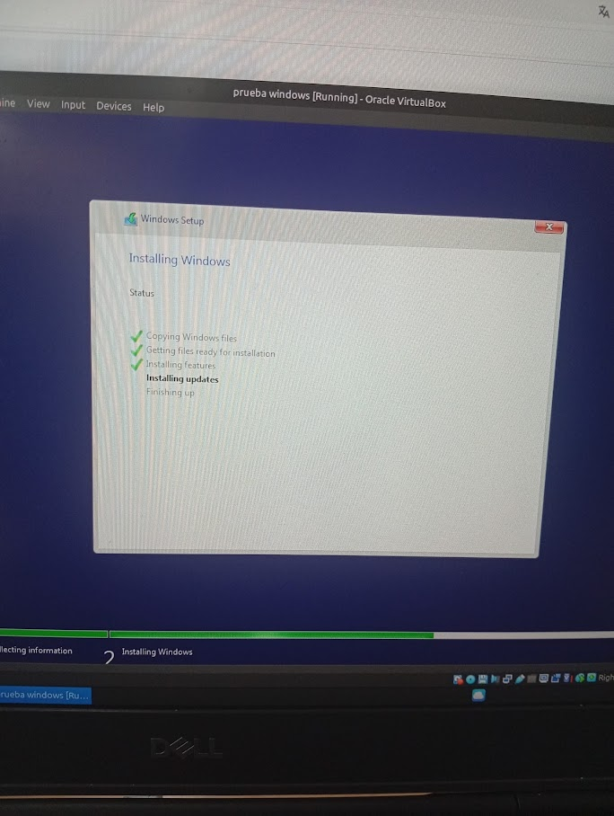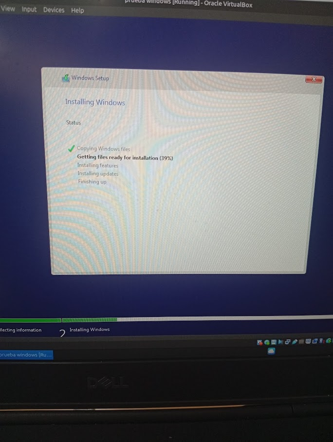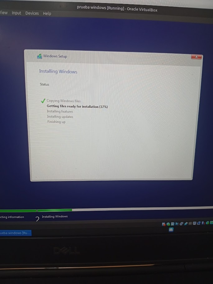 Còpia de fitxers: Un cop configurat tot, l’ordinador comença a copiar els fitxers del Windows 10 des del pendrive cap al disc dur virtual.