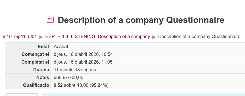 Cuestionario Description of a Company